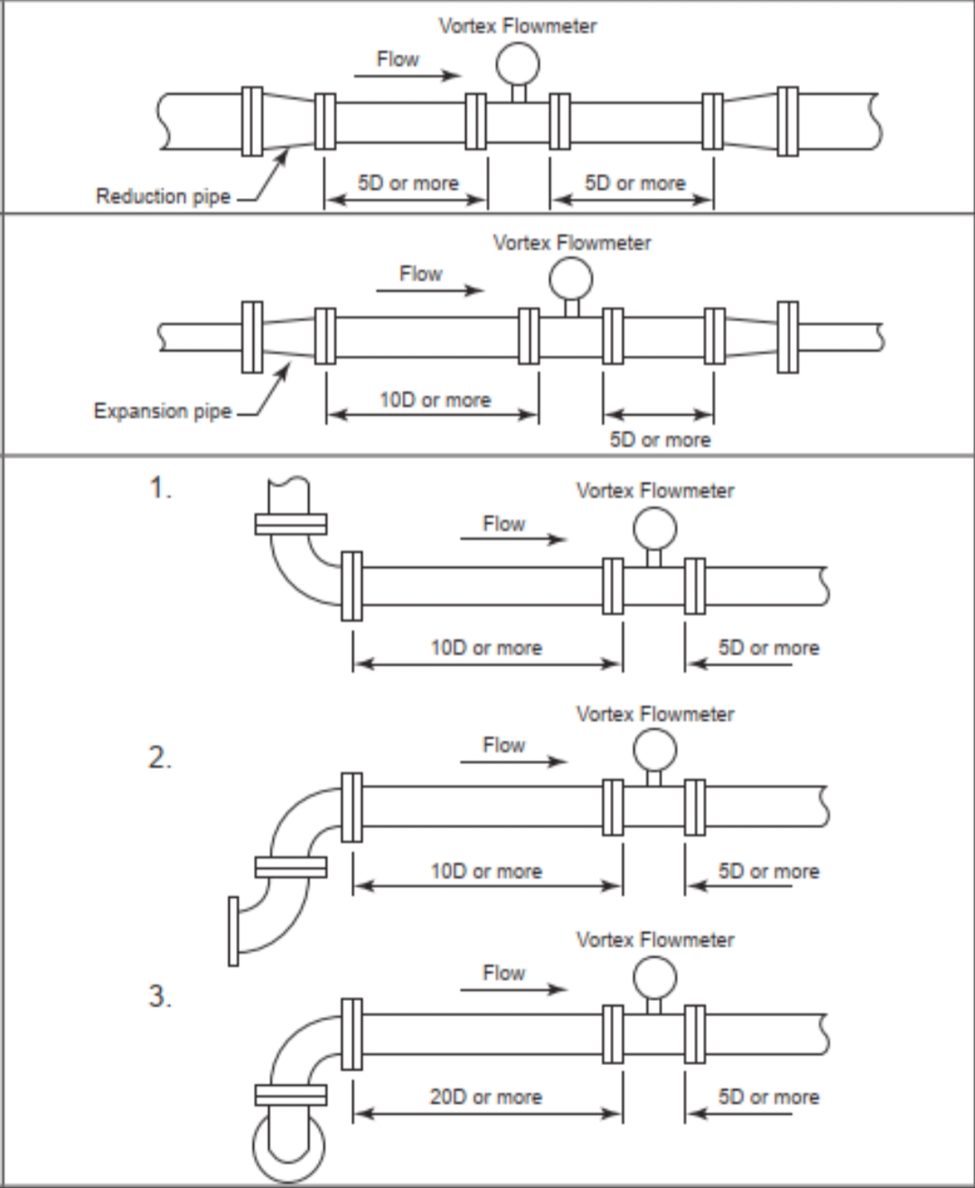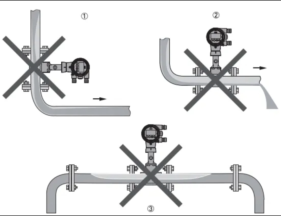 3. Rectae fistulae sectiones fluminis et amni (si instrumenta temperatura et pressionis requiruntur, fluens amni constituantur. Instrumenta amni etiam extra sectionem fistulam rectam collocari debent. Ordinatio ordinatio plurium instrumentorum est: fluxus, pressionis transfusor, temperatus transfusor). Fere, refer ad fistulam rectam longitudinis requisita quae in exemplaris producti corporis determinata (seu norma communis 15D fluminis et 5D inferioris sicut per instrumenti manualis). Monstrare fistulam machinalem machinam circa adverso flumine et amni recta fistula requisita ad vorticem fluxum in antecessum. Cum instrumenti fabrica deligitur, institutionem requisita confirmari debent secundum determinationes fabricae.